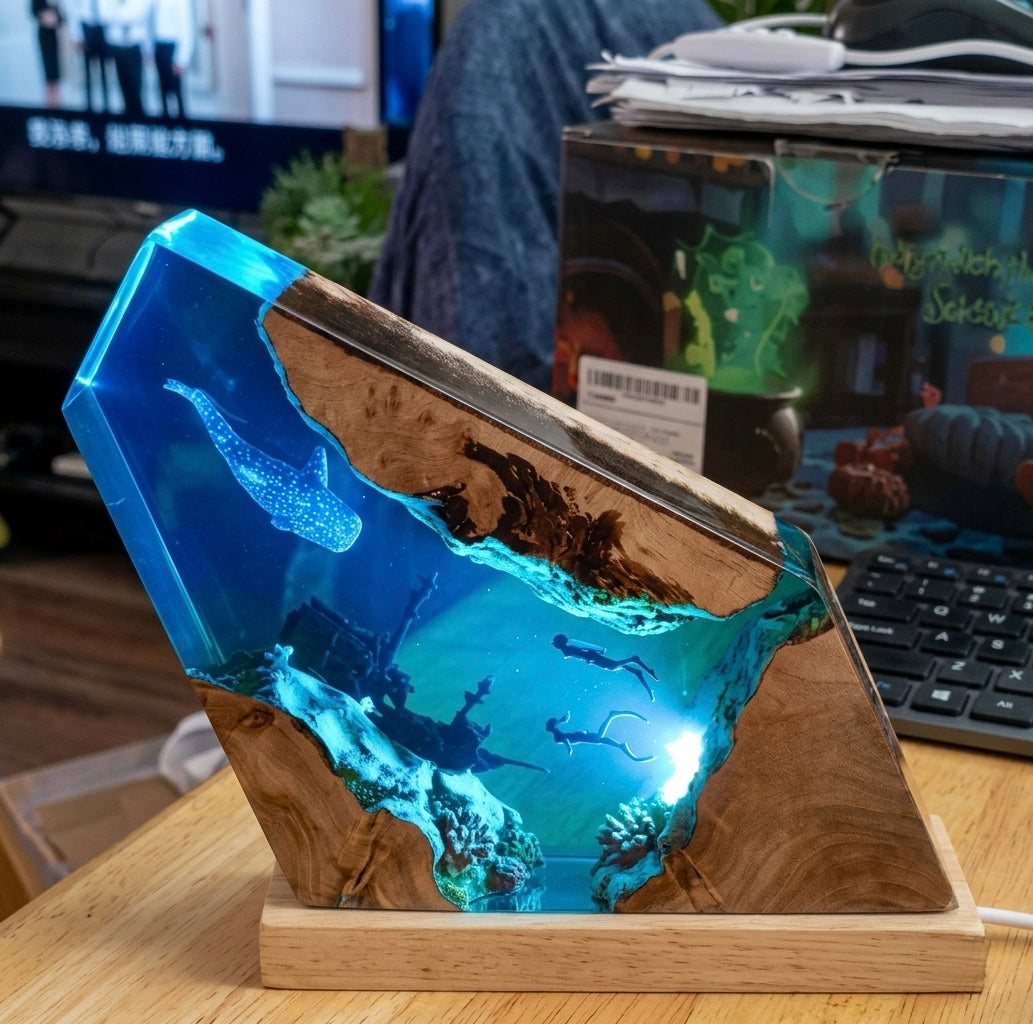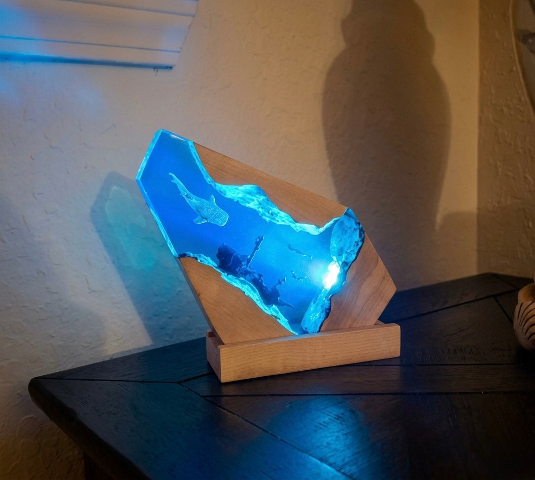 Beautiful ocean details and glowing resin come together to create a lamp that feels more like art than lighting. Bring a calm, underwater vibe into your space 🐠💙